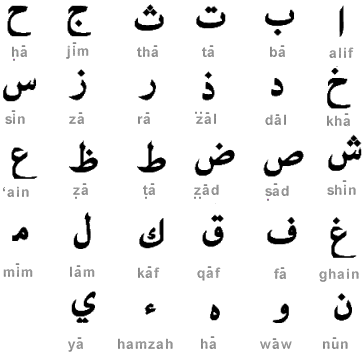 Here are the Arabic Letters in Arabic if you have Arabic enabled on your browsser: